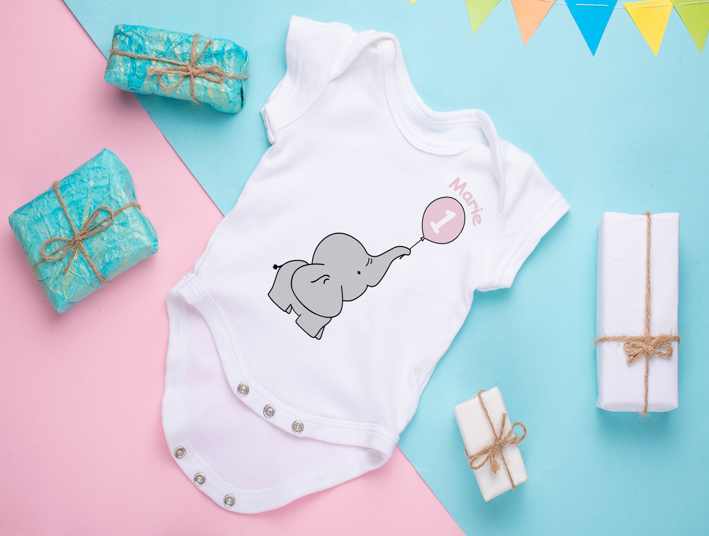 Zuckersüßer Elefant mit Luftballon, das perfekte Ourfit zum Geburtstag!